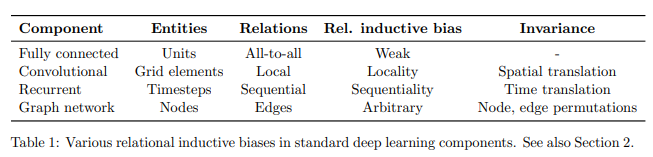 - 레이어의 구성은 relational inductive bias (관계 귀납 편향) 을 제공